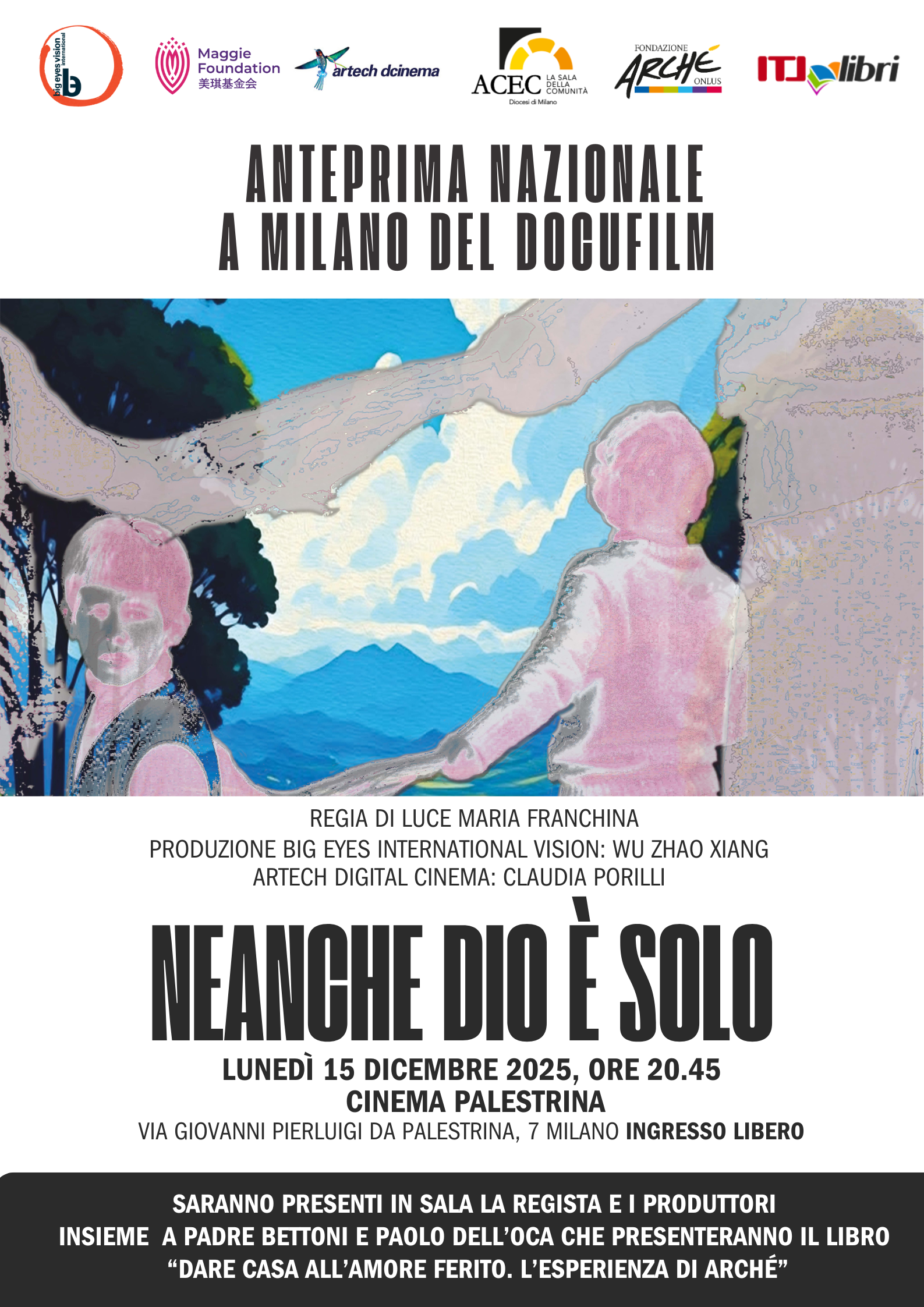 Lunedì 15 dicembre 2025 un doppio appuntamento al Cinema Palestrina di Milano: l'anteprima nazionale del docufilm “Neanche Dio è solo” e la presentazione del nuovo libro di Arché: “Dare casa all’amore ferito”.
