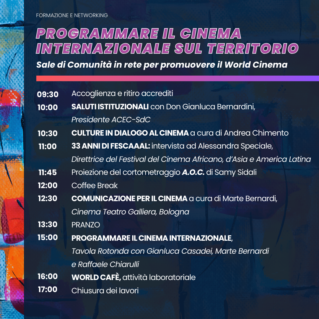 Il cinema può essere per molti dei nostri spettatori un’occasione rara e preziosa di incontro con l’altro: culture e civiltà lontane che entrano nelle nostre vite e ampliano le nostre prospettive. Per proporre il cinema internazionale – a cui certamente il pubblico è meno abituato – è fondamentale lavorare sulla formazione dei nostri volontari e animatori culturali, sviluppare un rapporto con il territorio e la cittadinanza, rimanere curiosi sui prodotti cinematografici “diversi”.