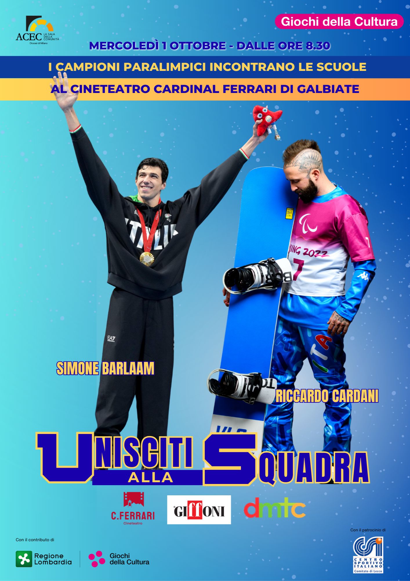 Il 1° ottobre il CineTeatro Cardinal Ferrari di Galbiate ospita un evento speciale tra sport, cinema e inclusione in avvicinamento alle Olimpiadi e Paralimpiadi Invernali 2026 con le scuole del territorio.